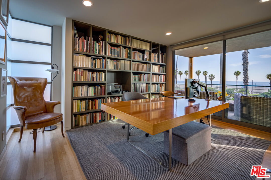 Rare opportunity to live in one of only 8 single family residences on the front row of Ocean Ave. Close proximity to everything that Main St has to offer and a stones throw away from the beach. This architecturally significant home, designed by Leroy Miller FAIA, is the perfect indoor/outdoor living situation. Sliding doors open up to the multiple deck areas that provide unobstructed, panoramic ocean views. This approx. 3,600 sqft abode features 3 bedrooms down and 1 up that could double as an office or flex space. The enclosed atrium brings in great natural light and creates a serene energy that flows throughout the home. The attached 2 car garage has high ceilings with great storage, built in bike racks, etc. Two additional cars can fit in the driveway. California living at its finest!
