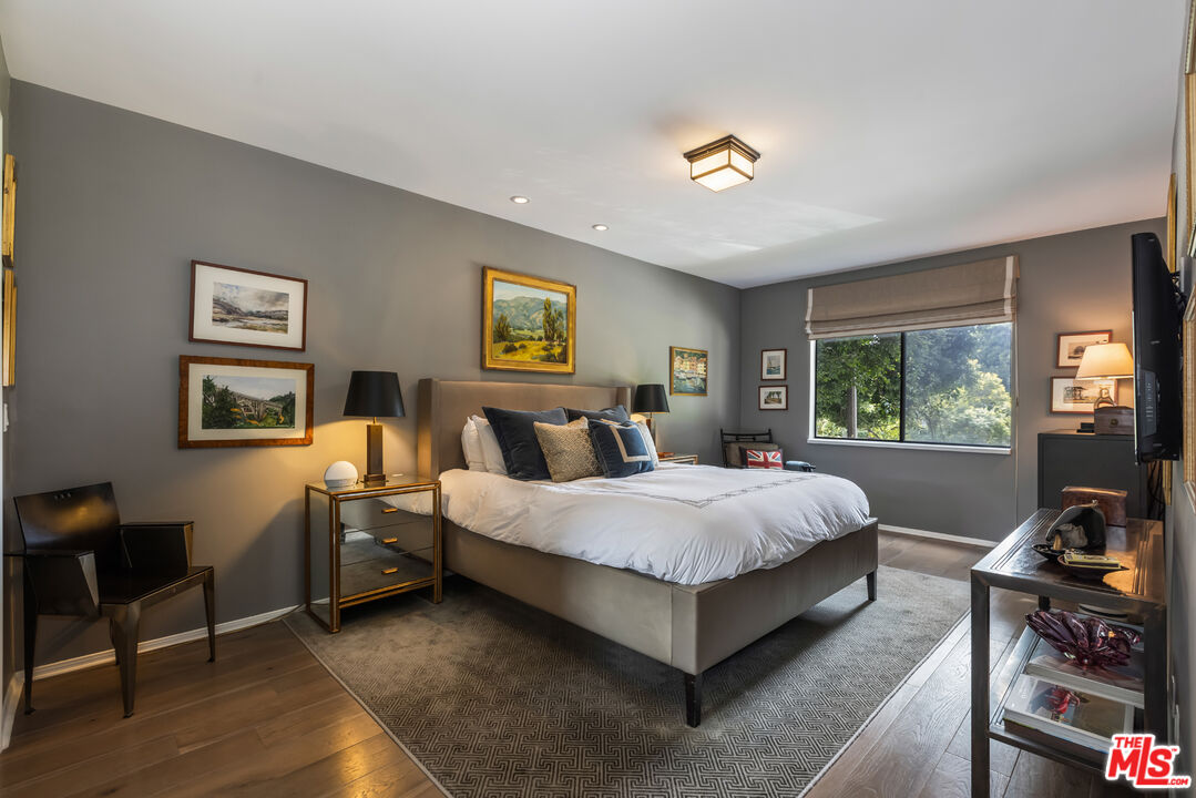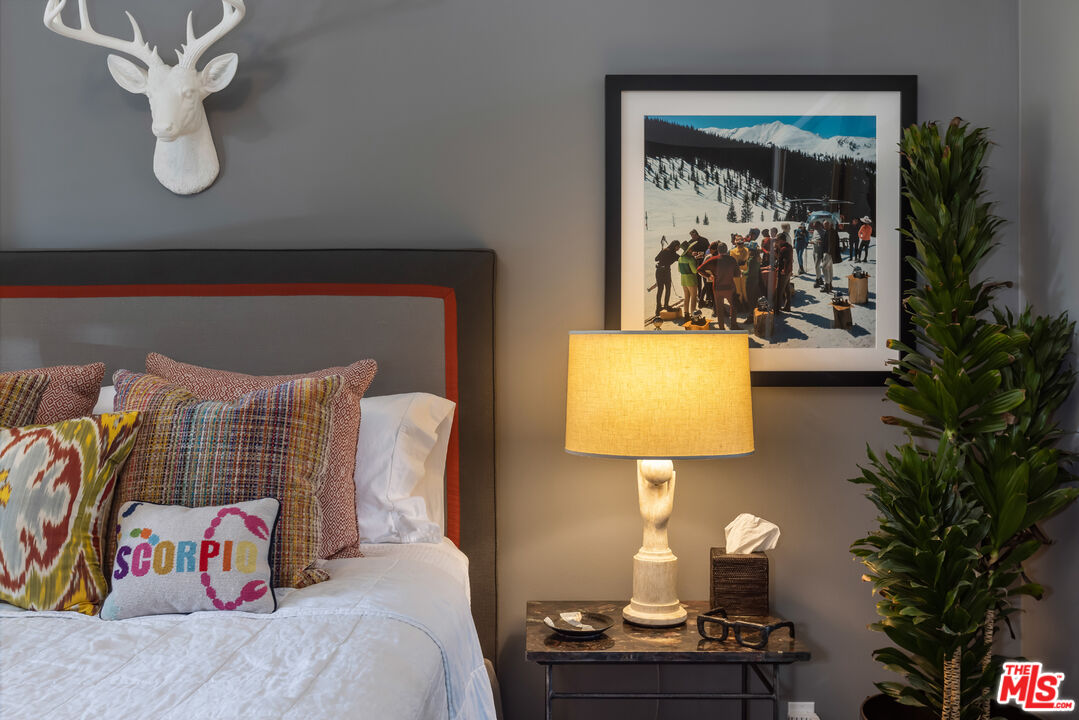 Welcome to 'The Parker' a character rich, designer 2 Bedroom + 2 Bathroom West Hollywood condo that has had every detail accounted for. As you enter through the double doors you are whisked away to a magical place flooded in natural light from the expansive floor to ceiling windows and wide plank French White Oak floors. Farrow & Ball walls wrap the living areas in warmth as you enjoy dinners with friends and family while sitting by the Jerusalem stone flanked fireplace. An open kitchen with stainless steel appliances, custom cabinetry, and polished black granite countertops leads way to double pane sliding doors and a private balcony. The bar has a speakeasy feel with its mirrored shelves, belvedere blue walls and its leather finished black granite countertops. The primary suite features a Victoria + Albert volcanic limestone soaking tub, white quartz dual vanity finished with California Faucets, a stand-in shower from Waterworks, a large cedar lined walk-through closet and a picture framed window that stares off at the lush scenery. Gorgeous Farrow & Ball wallpaper lines the guest bathroom with fixtures from Restoration Hardware, Jonathan Adler & Ralph Lauren. Plenty of storage, an in-unit Washer & Dryer, two (2) car parking, both with individual access., and within close proximity to Cedars Sinai, Beverly Hills, Robertson Blvd, and all that West Hollywood has to offer.